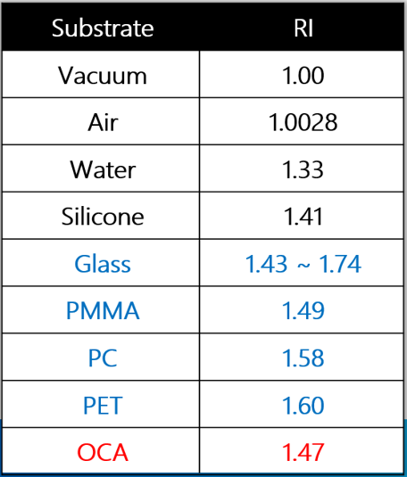 OCA/CEF and Refractive Index 折射率